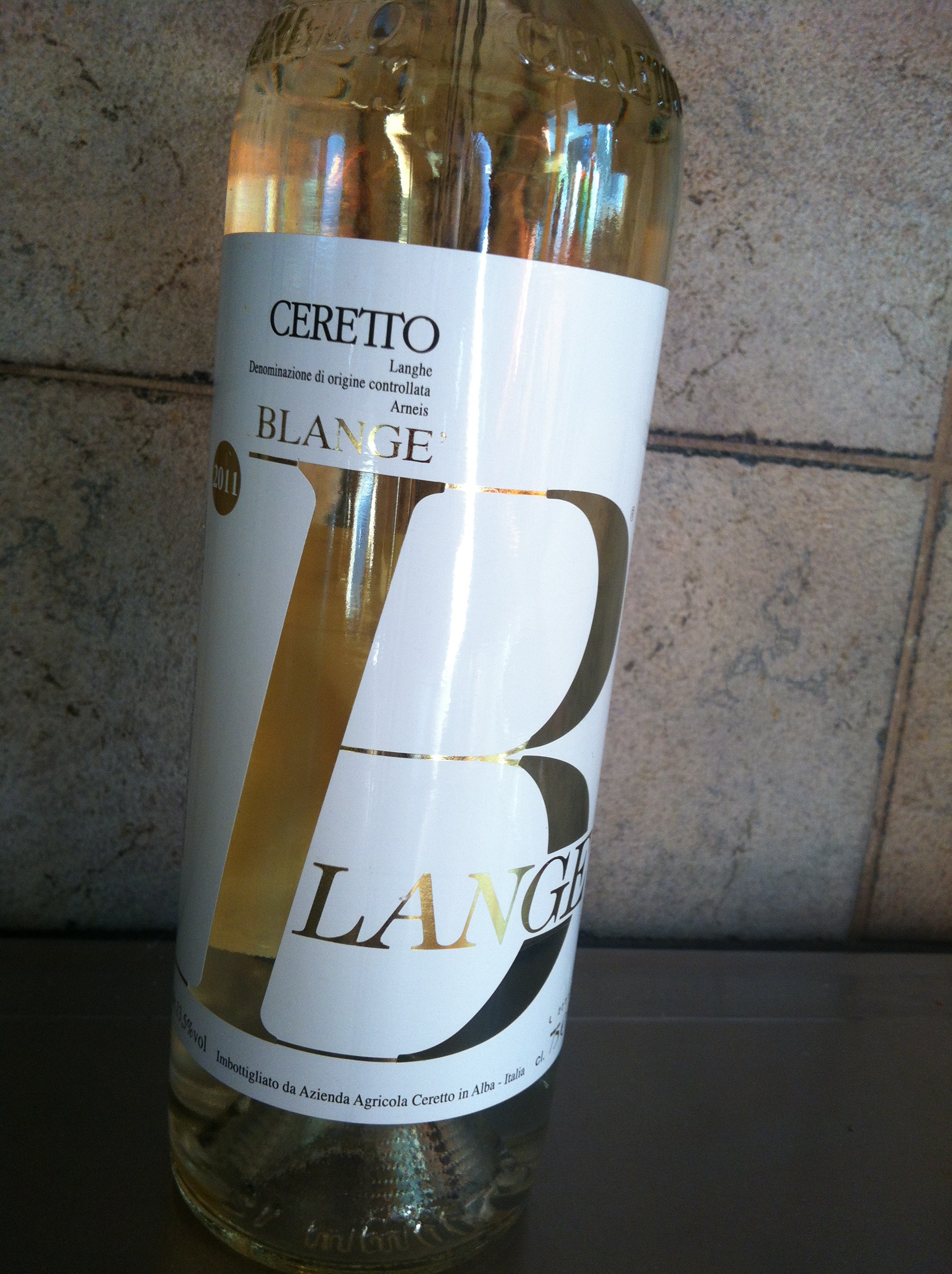 This week, my review is on Ceretto’s Blange’ 2011 vintage.  This is an obscure wine made from an even more obscure grape variety native to Italy called Arneis which means the ‘little rascal’ in local Piemonte dialect.  It is a grape variety that is difficult to grow and was traditionally used as a blending partner to the gorgeous Nebbiolo grape in the making of Barolo wines.