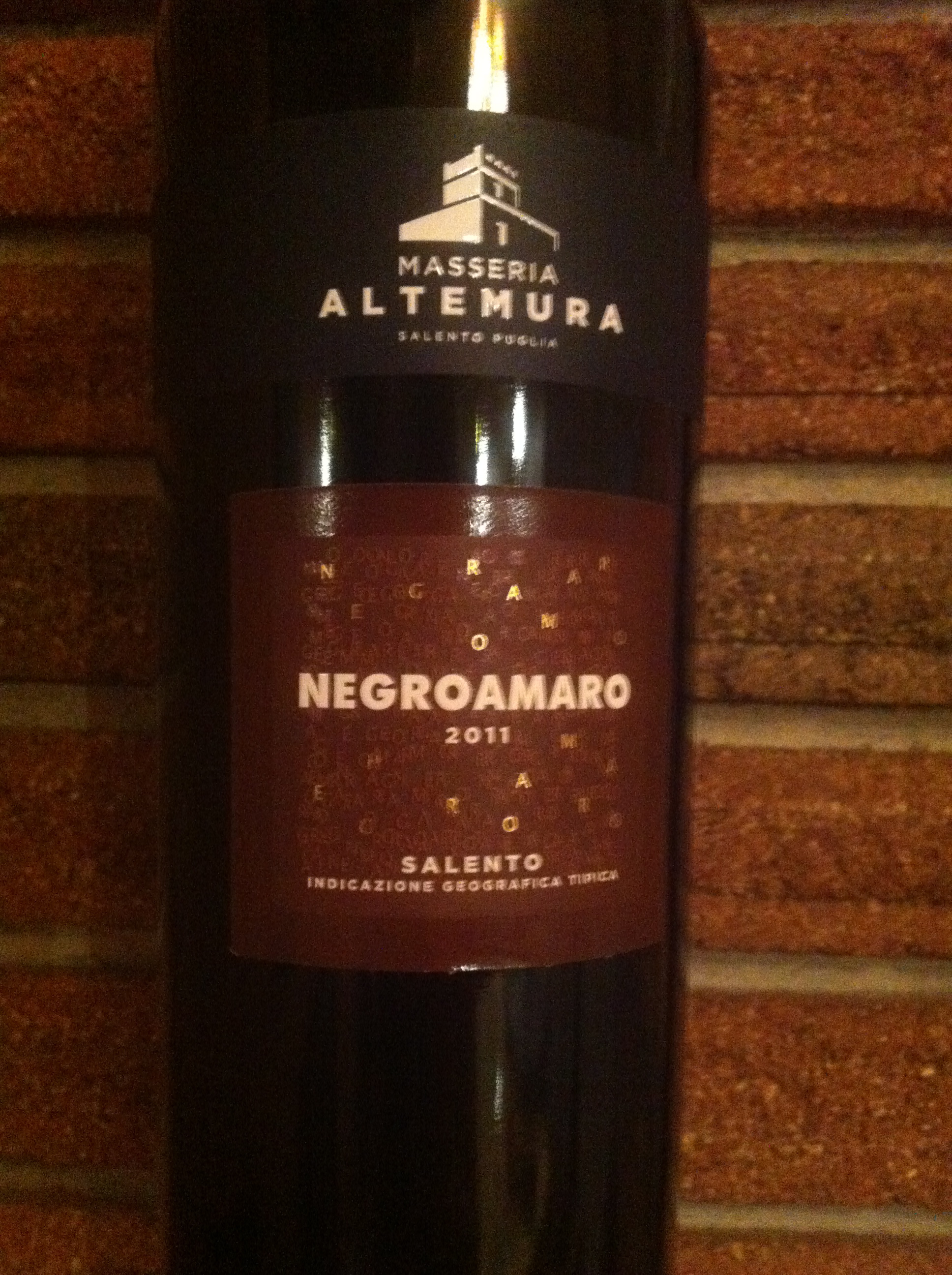 I did have to pay duty on the wine as it was considered ‘commercial’ which was no problem. I didn’t really know what I was getting into and the border guard was actually helpful and nice…not always the case! On the review block today is Masseria Altemura’s Negroamaro 2011.