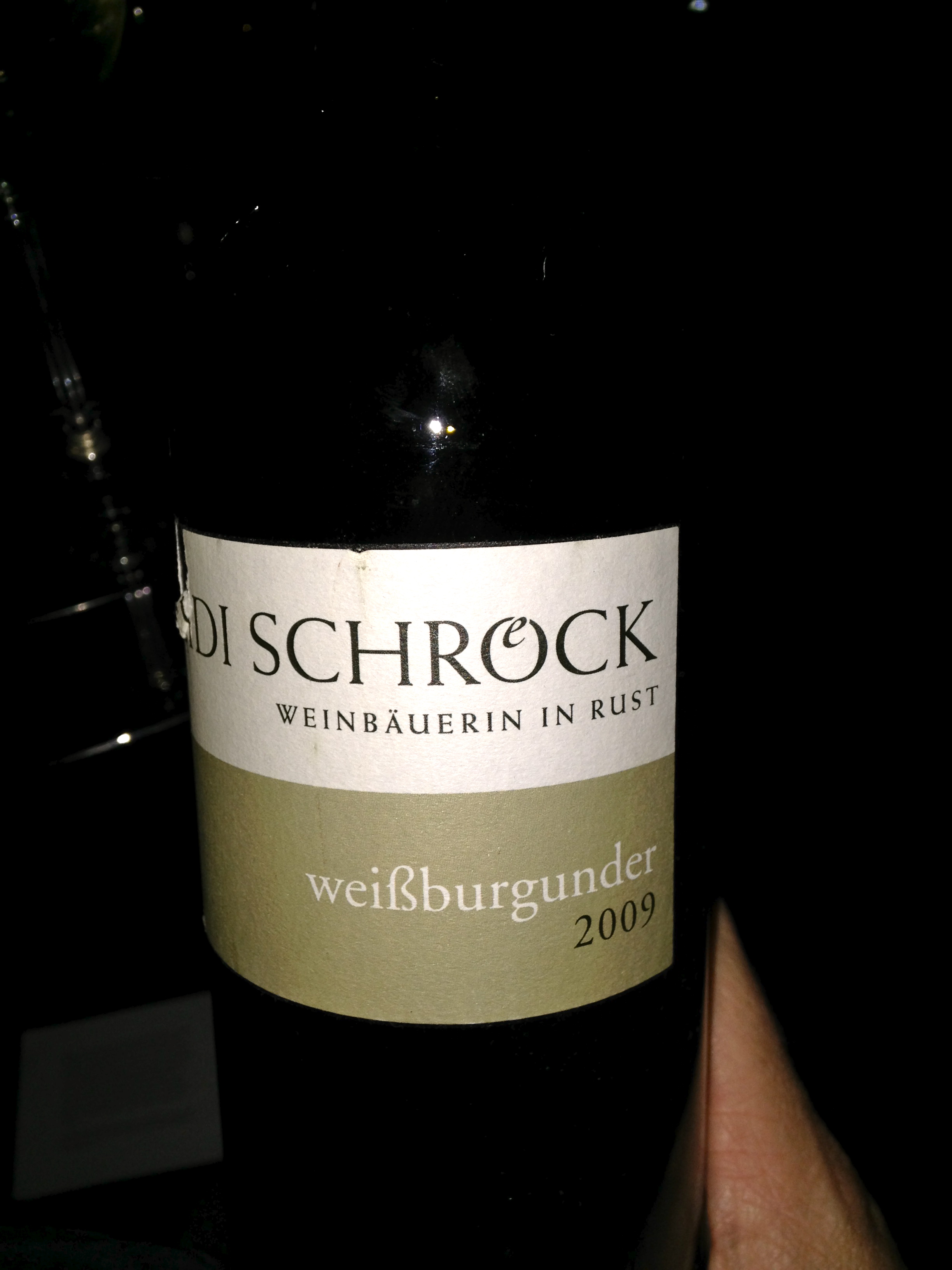 Then, because we really needed it and it was an evening for celebration, we had a bottle of Heidi Schrock‘s Wienbäuerin in Rust 13.5% abv. 2009 Weißburgunder . I would never have known about this fantastic Austrian winemaker, Heidi Schrock, if Lindsay didn’t select it. This off-dry Pinot Blanc is made from vines that range in age from 8 – 35 years old. It was harvested by hand and matured for half a year in large wooden casks. This was a complex and interesting Pinot Blanc. I would have it again and again. It is available at Dundarave Wine Cellar in West Vancouver for about $35. Divine.