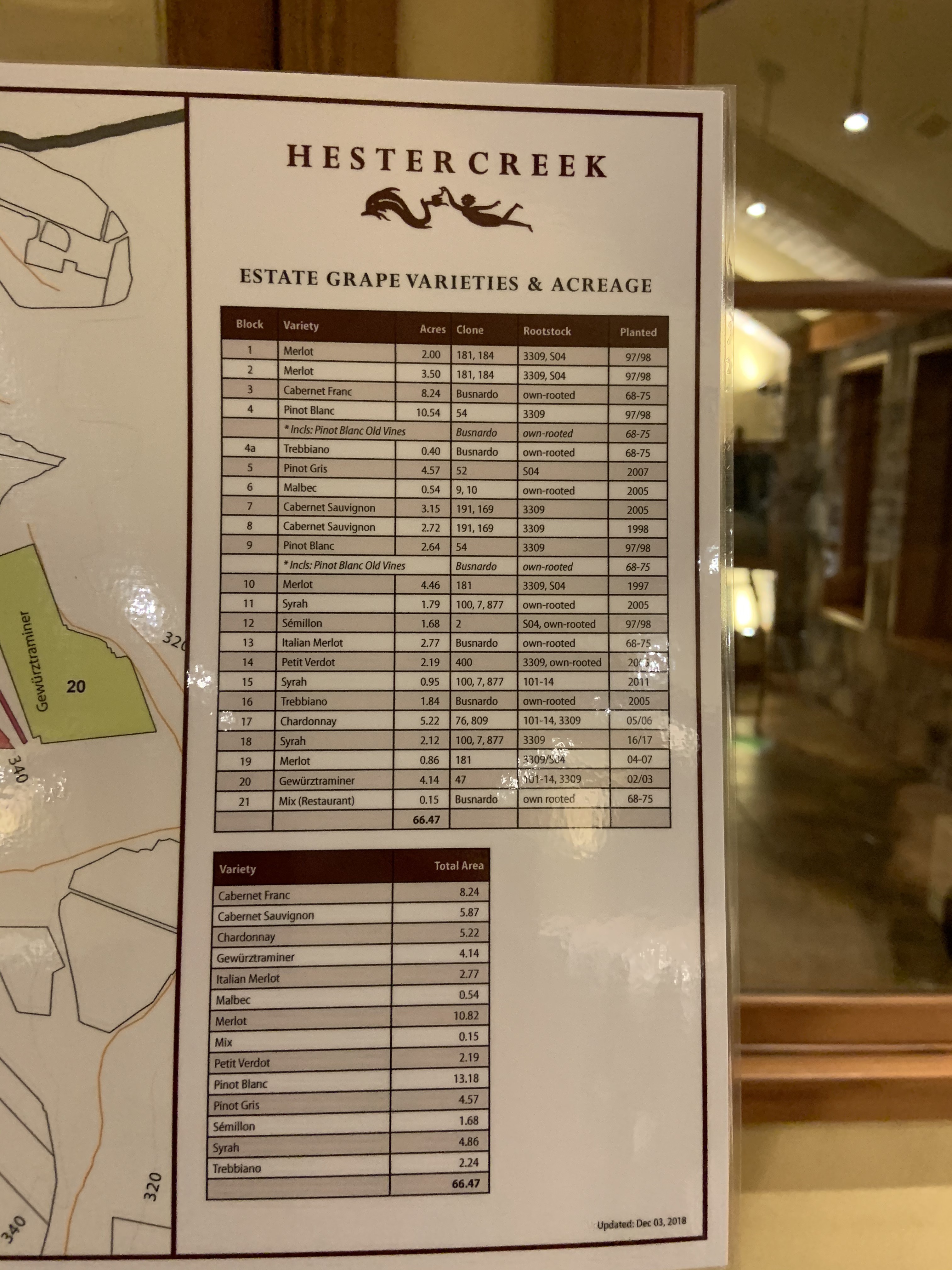 - Old Vines Trebbiano Block 16 2019 – From the oldest vineyard section on the Hester Creek estate, this approachable wine is loaded with notes of key lime pie and a hint of sweetness. $20.99